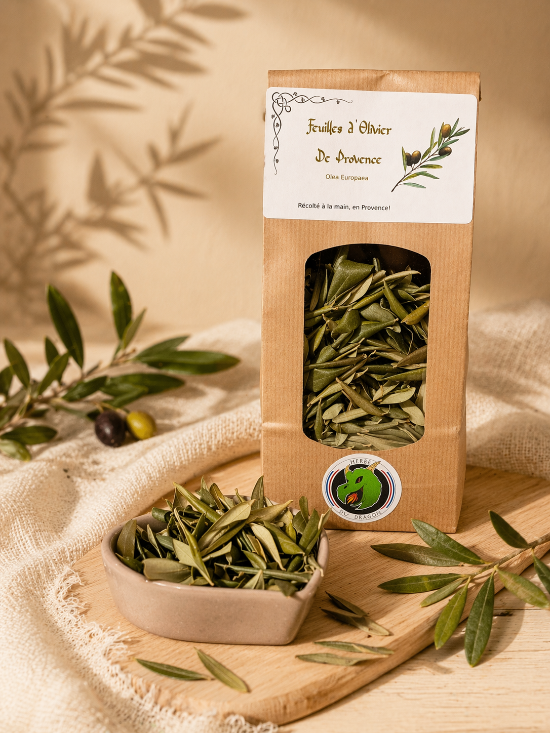 – Feuilles d’olivier de Provence, garanties sans aucun traitement